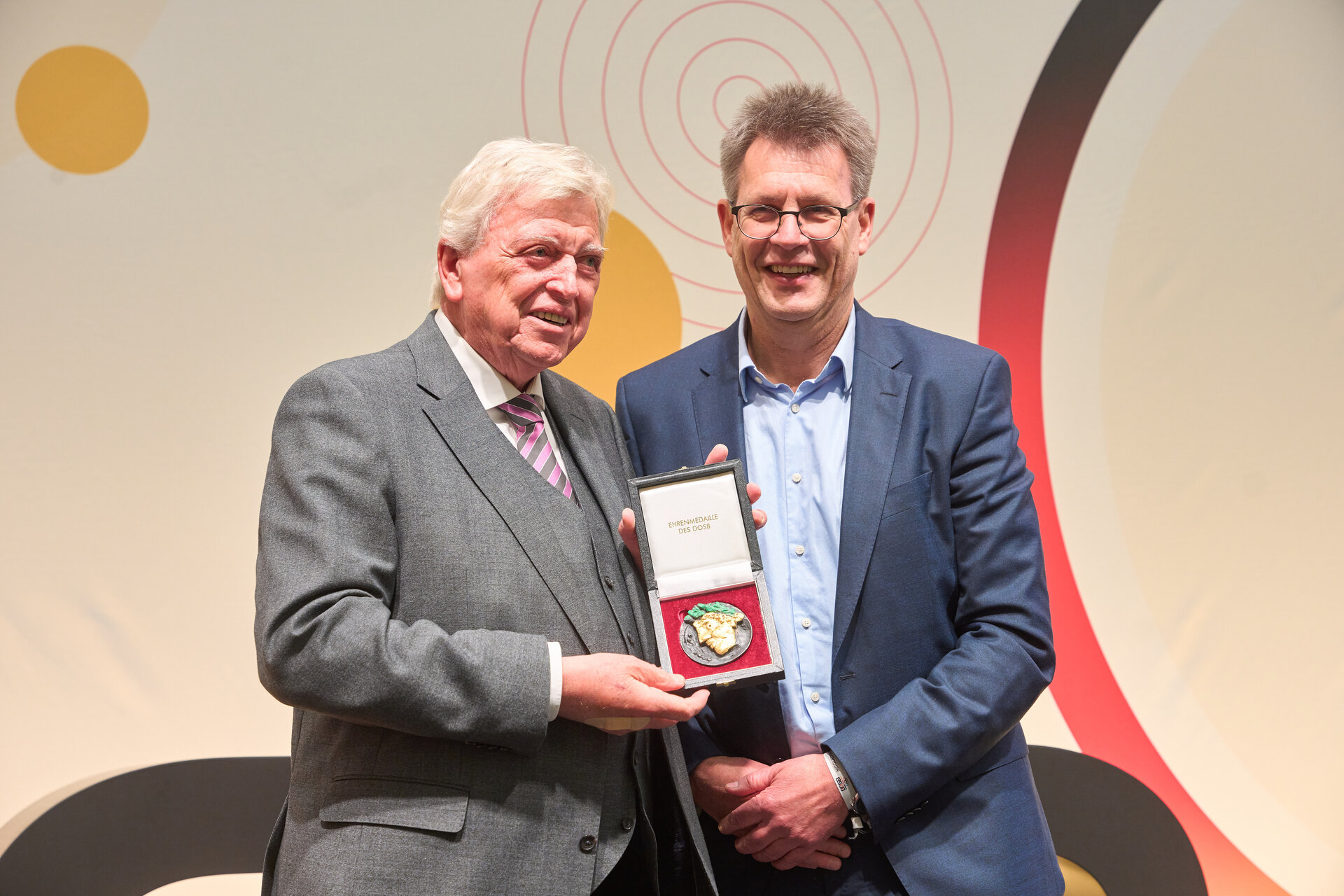 „Der Erfolg hat immer viele Väter“ haben Sie, lieber Volker Bouffier, selbst gerne betont. Ich würde „und Mütter“ ergänzen. Lieber Volker Bouffier, dass wir Ihnen schon 2023 die Ehrenmedaille des DOSB verliehen haben, war damit also auch im Nachhinein goldrichtig! Einer Ihrer vielen Sätze, die bei mir nachhallen, ist Folgender: „Gemeinsamkeit schaffen und eine große Idee skizzieren.“ Volker, Sie haben ein „und“ zwischen „Gemeinsamkeit“ und „Idee“ gestellt. Aber ich finde: „Gemeinsamkeit schaffen“, das allein ist schon eine große Idee. Und dieser möchte ich mich heute besonders widmen.